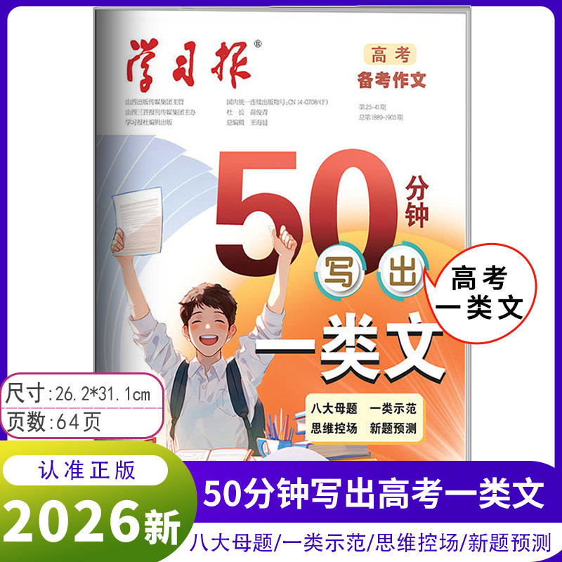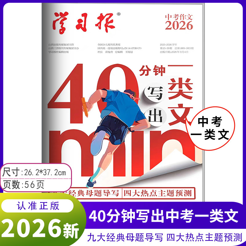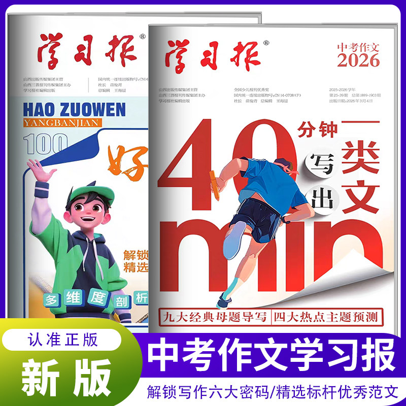 《2026高考50分钟写出一类文》《中考作文学习报》《40分钟学出中考一类文》《小升初30分钟写出作文》等系列报纸,专为中小学生打造高效写作提升方案。精选经典素材与年度热点主题,紧扣中高考命题趋势,提供实用写作技巧与高分范文。通过科学训练,帮助学生在限定时间内快速构思、精准表达,轻松写出结构清晰、语言优美的一类文。内容涵盖立意、选材、布局、语言优化等关键环节,助力小升初、中考乃至高考作文实现突破,成就满分梦想。