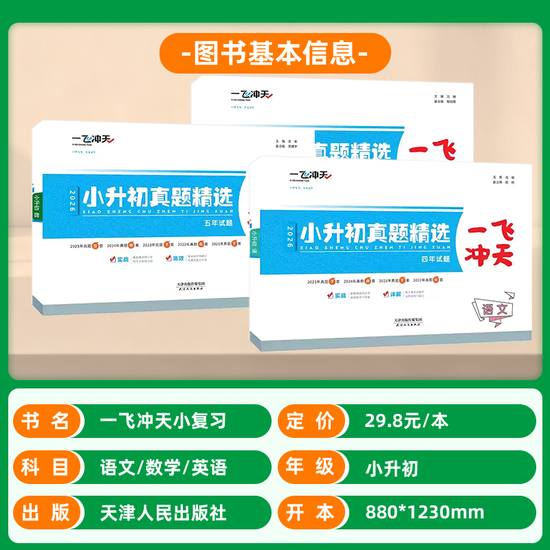 2026版《一飞冲天小升初真题精选》语文、数学、英语全套,专为天津地区小学六年级学生设计,精选历年小升初毕业升学考试真题,紧扣天津本地考纲与命题趋势。试卷涵盖六升七年级衔接重点,系统梳理小学阶段核心知识点,强化综合运用能力。每科均配有详细解析,帮助学生查漏补缺,提升应试技巧。本书兼具复习与实战功能,是小学升初中过渡阶段的高效备考资料,助力学生夯实基础、冲刺理想中学,实现学业平稳衔接,为一飞冲天奠定坚实根基。