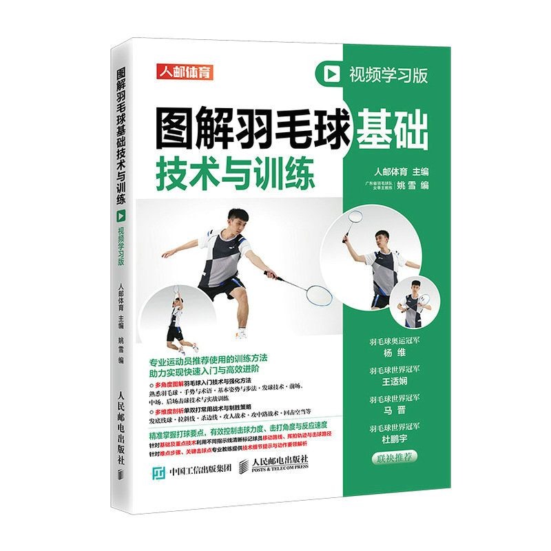 这是一本关于羽毛球基础技术与训练的视频学习书籍,由人民邮电出版社出版,书名为《图解羽毛球基础技术与训练》。这本书涵盖了羽毛球的基本技巧、战术和训练方法,以图文结合的方式呈现,让读者更容易理解和掌握。通过学习这本书,读者可以快速掌握羽毛球的基本技巧,提高自己的技术水平。本书适合初学者和进阶选手,是一本非常值得学习的羽毛球教学书籍。