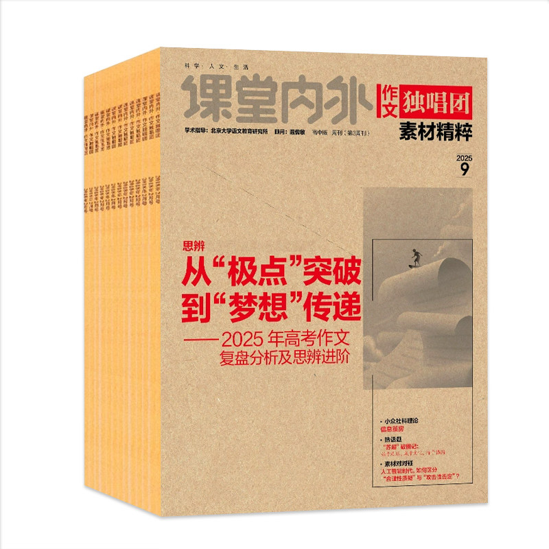 《作文独唱团》2026年2月新刊火热上市!本期聚焦高考作文热点,精选2024年时事新闻与经典素材,涵盖社会、科技、文化等多领域话题,助力高中生积累写作素材、提升思辨能力。内容紧扣命题趋势,提供押题方向与高分范文解析,是课堂内外不可多得的阅读与备考利器。现推出全年/半年订阅服务,订阅即赠精美笔记本,方便摘录金句、记录灵感。过刊涵盖2024年全年内容,系统性强,适合长期积累。无论是冲刺高考,还是提升语文素养,《作文独唱团》都是高中生值得信赖的写作伙伴。立即订阅,让写作更有力量!