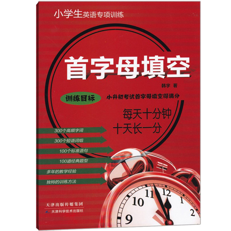 《正版小学生英语专项训练:首字母填空》由韩宇编著,专为五、六年级学生及小升初备考设计。本书紧扣教材重点,系统归纳小学阶段核心短语与词组,通过首字母填空题型强化词汇记忆与语境运用能力。练习设计由浅入深,题型贴近小升初考试要求,帮助学生巩固基础知识,提升阅读理解与语言综合运用水平。每道题均配有清晰解析,便于学生自查自纠。作为同步教辅书籍,本书与课本内容紧密衔接,适合课堂巩固与课后练习使用,是小学生夯实英语基础、备战升学考试的高效训练工具。