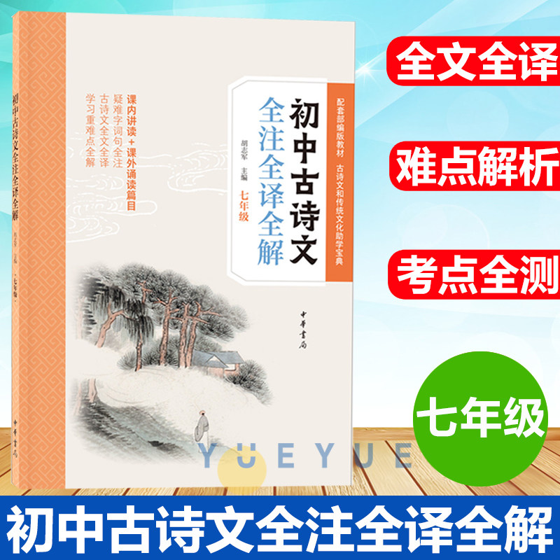 天猫初中古诗文全注全译全解七年级八九年级 解析古诗文精讲难点重点考点教材课后习题书籍 带注释译文讲解 胡志军编789年级中华书局