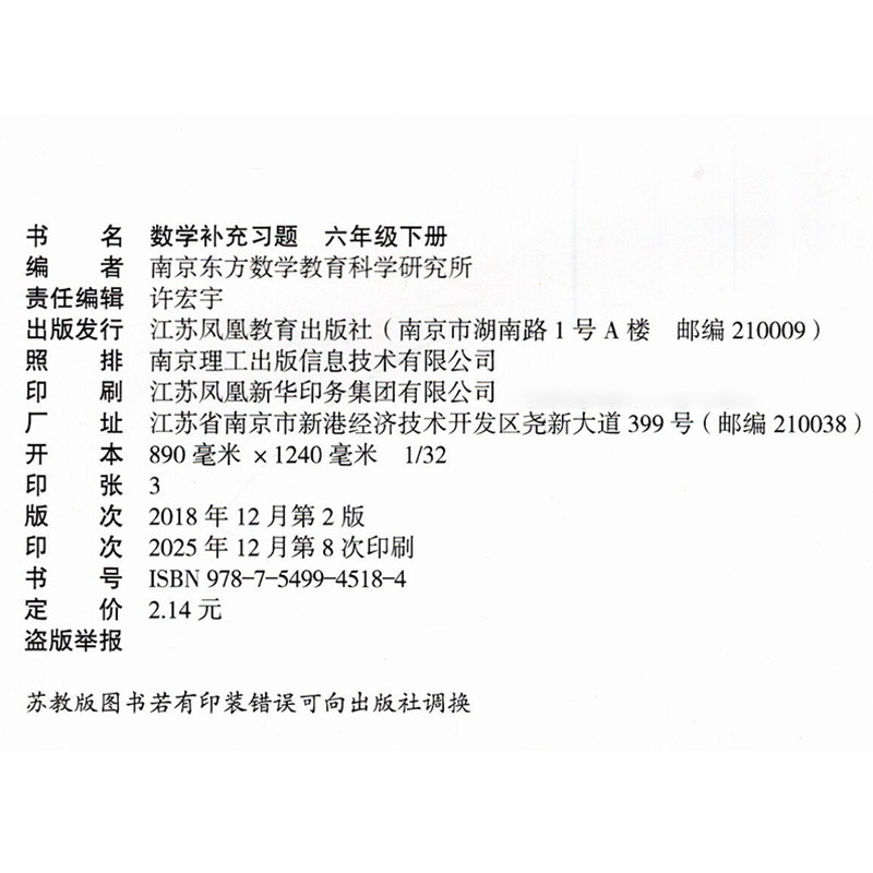 天猫2026春 补充习题 小学数学六年级下册6下 苏教版 学生用书 小学同步教辅教材配套用书 江苏凤凰教育出版社 官网正版 XGX