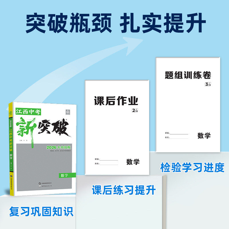 【江西专版】2026新版《中考新突破》系列总复习资料,专为江西初三学生量身打造,涵盖语文、数学、英语、物理、化学、道德与法治、历史、生物、地理九大学科。紧扣江西省中考最新考纲与命题趋势,系统梳理知识要点,强化重难点突破。精选典型例题与专项练习题,注重基础巩固与能力提升并重,配有详细解析,助力学生高效备考。丛书结构清晰,讲练结合,既适合课堂同步复习,也便于课后自主训练,是九年级学生冲刺中考的理想复习资料,帮助考生夯实基础、突破瓶颈,全面提升应试能力。