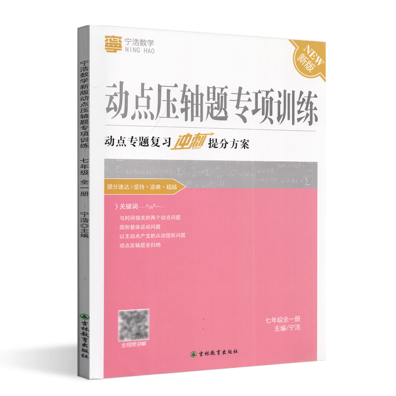 《宁浩数学动点压轴题专项训练(七年级全一册·通用版)》由吉林教育出版社出版,专为初一学生设计,聚焦七年级数学动点问题的核心难点与高频考点。本书系统梳理动点在数轴、几何图形中的运动规律,精选典型压轴题型,由浅入深编排,强化逻辑思维与解题技巧。配备详细解析与思路点拨,帮助学生掌握“设点、表示、列式、求解”的解题路径,有效突破动点难题。适用于同步复习、专题提升与考前冲刺,是提升数学综合能力、攻克压轴题的理想训练册,助力学生在考试中取得高分。