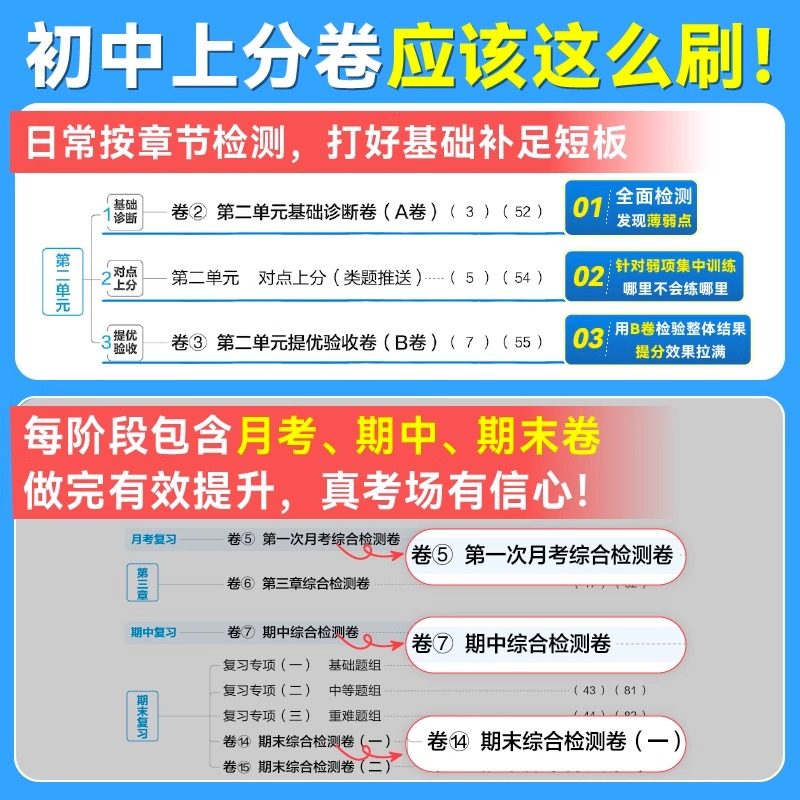 淘宝2026初中上分卷必刷题下册上册七年级八.九.年级数学语文英语物理政治地理历史生物七上人教苏教资料试卷练习题册初一书