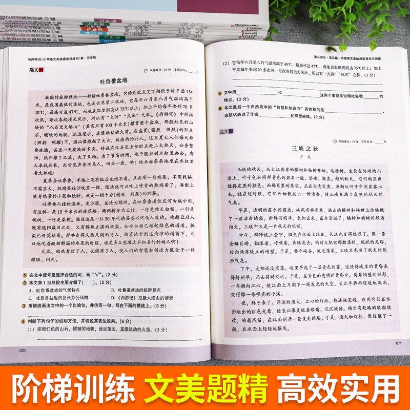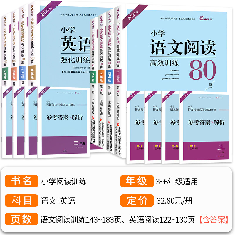 天猫木头马小学语文阅读高效训练80篇+英语阅读强化训练100篇小学一二三四五六年级阅读理解专项训练书人教版课外练习题上下册每日一练