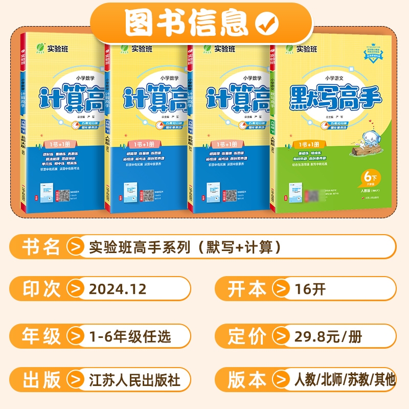 天猫2026春实验班计算高手默写高手一年级上册数学专项训练练习题二年级三四五六年级下册语文英语人教苏教北师大小学生思维训练春雨