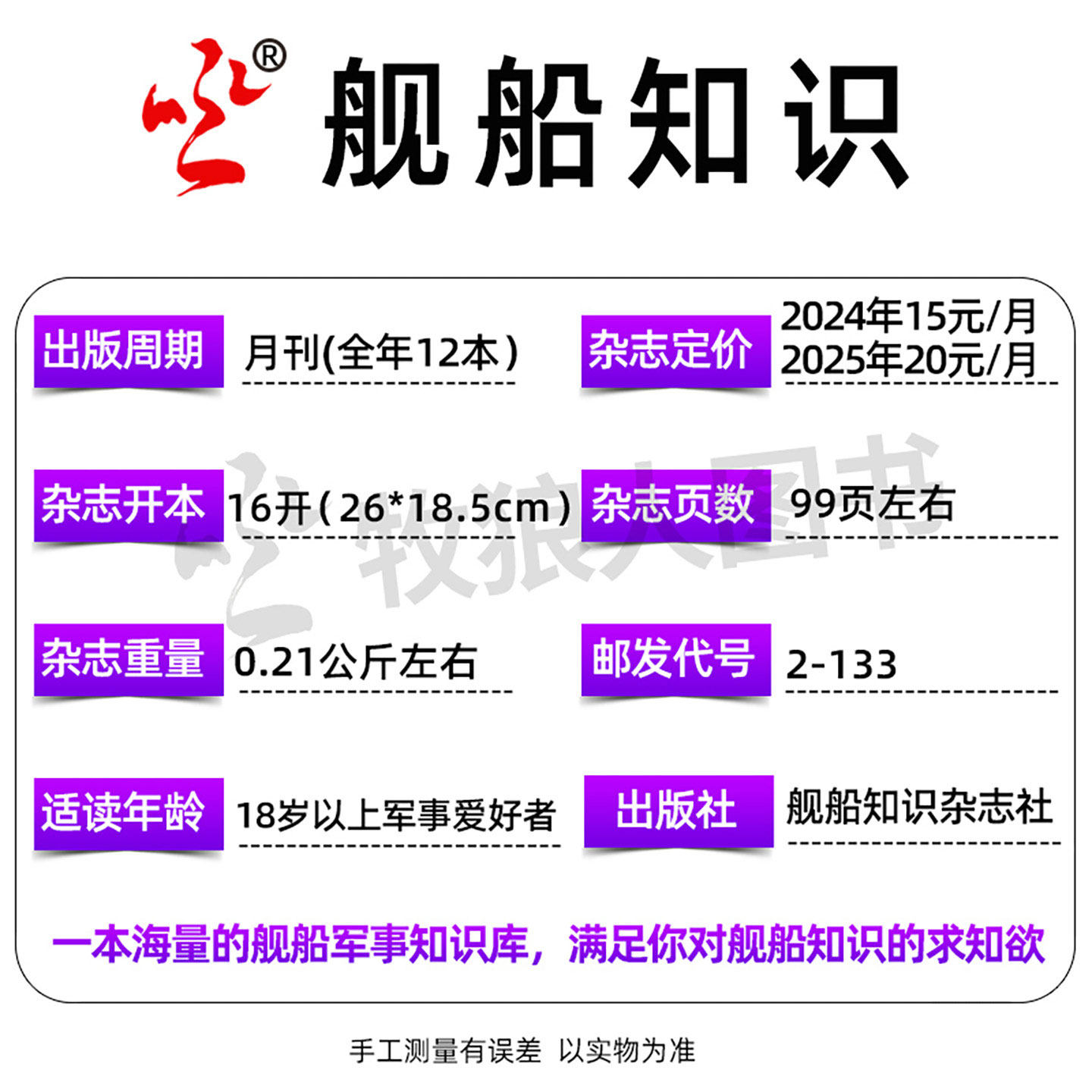 《舰船知识》杂志2025年1-12月刊(2026年全年/半年订阅)是面向军事爱好者与专业读者的权威正版出版物,聚焦全球海军发展、航母作战体系、现代军事科技与海陆空天一体化装备动态。内容涵盖先进舰艇设计、航空兵器技术、远洋战略及国际防务热点,深度解析中美俄等国海军现代化进程。杂志依托专业作者团队与一线资料,提供详实数据与权威观点,兼具知识性、时效性与收藏价值。非2024年过刊,确保信息前沿。适合军事迷、科研人员及国防从业者订阅,是了解世界海军力量演变与高端装备发展的必读刊物。
