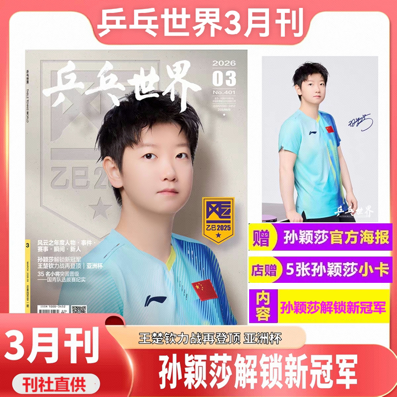 天【孙颖莎 王楚钦封面 王者归来 赠时光同行纪(莎头影像志手账本)+大卡两张+小卡6张】当代体育/乒乓世界 杂志2026年3月刊