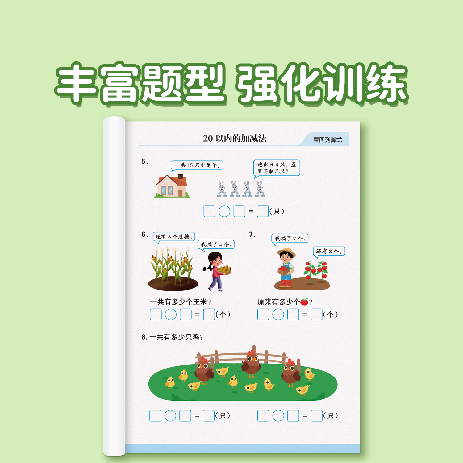 天猫看图列算式计算题专项强化训练数学练习题卡幼儿园中大班1020以内加减法天天练幼升小幼小衔接一日一练一年级看图列式口算每日一练