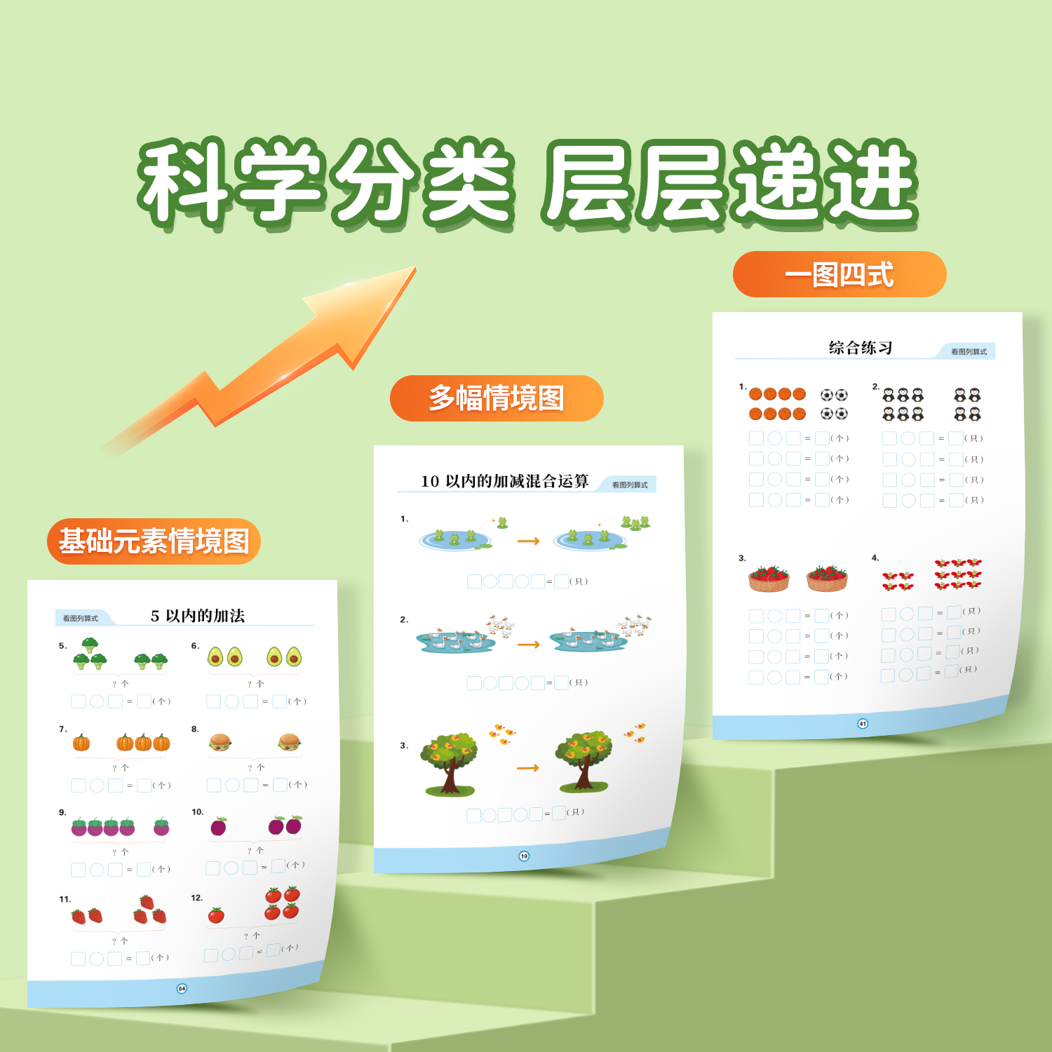 幼小衔接一日一练看图列算式计算题专项强化训练习题10/20以内加减法口算题卡天天练幼儿园大班升一年级看图列式应用题解决问题书