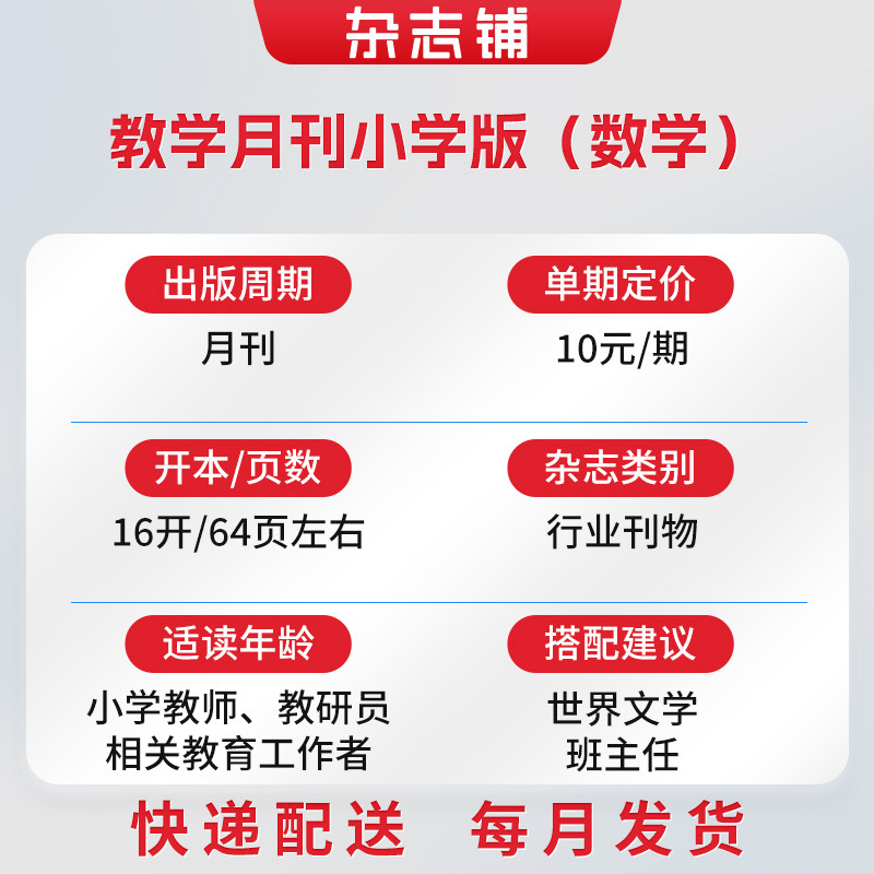 天猫【杂志铺】教学月刊小学版(数学)杂志2026年3月起订 共12期 数学辅导小学生数学 教师学习参考书 书籍期刊杂志订阅