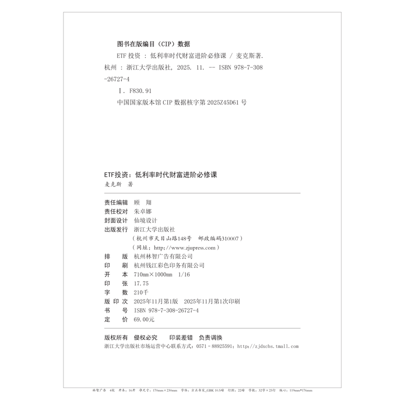 《ETF投资:低利率时代财富进阶必修课》由麦克斯著,是浙江大学出版社出版的一本投资理财指南,凤凰新华书店旗舰店正版发售。本书聚焦当前低利率环境下的财富增值难题,系统解析ETF(交易型开放式指数基金)的投资逻辑与实战策略。作者结合全球市场案例,深入浅出地讲解ETF的运作机制、资产配置方法及风险控制技巧,帮助投资者以低成本、高效率实现长期稳健收益。无论你是理财新手还是资深投资者,本书都能为你提供清晰的投资路径,是把握市场趋势、实现财富进阶的必备读物。在资产配置日益重要的今天,掌握ETF投资已成为现代投资者的必修课。
