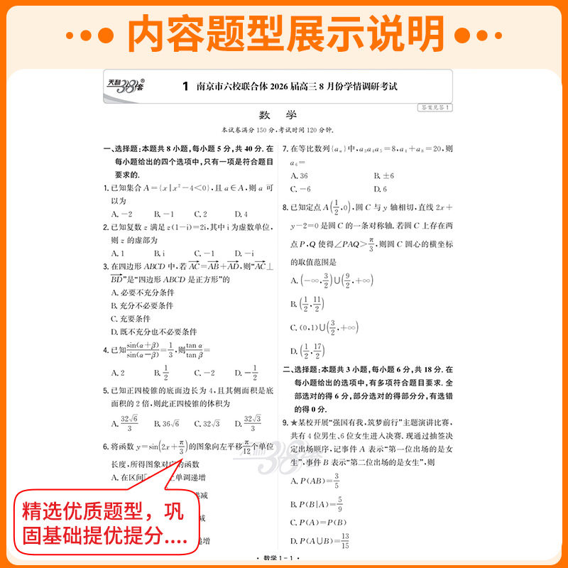 《浙江专版2026版天利38套·浙江省新高考模拟试题汇编》专为浙江考生打造,紧扣2025年1月及6月选考命题趋势,精选优质模拟题与预测真题,覆盖语文、数学、英语、物理、化学、生物、政治、历史、地理、技术十科。试题由一线名师命制,严格依据新课标与浙江考试说明,题型、难度贴近高考实际,兼顾基础巩固与能力提升。1月版侧重阶段性复习检测,6月版强化冲刺模拟,助力考生熟悉考试节奏、查漏补缺。配套详解详析,提升应试效率,是浙江高三学子备战选考的理想复习资料。
