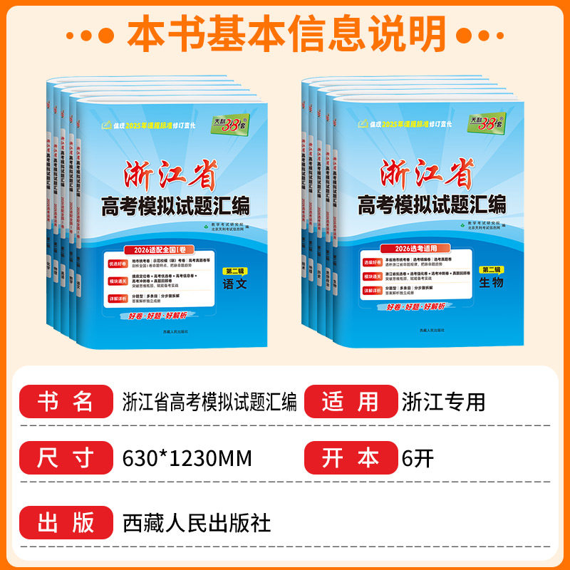 天猫浙江专版2026版天利38套浙江省新高考模拟试题汇编1月版选考语文数学英语物理化学生物政治历史地理技术试卷6月版2025预测真题模拟
