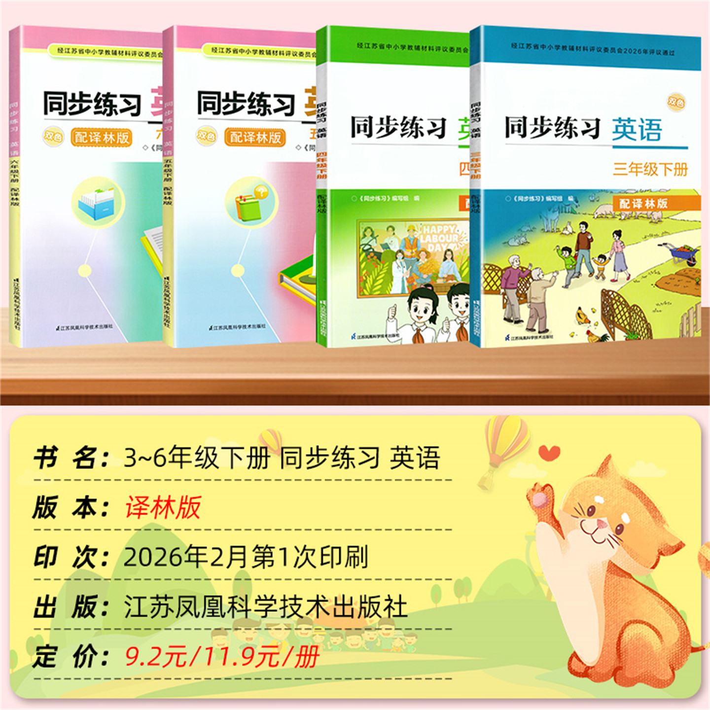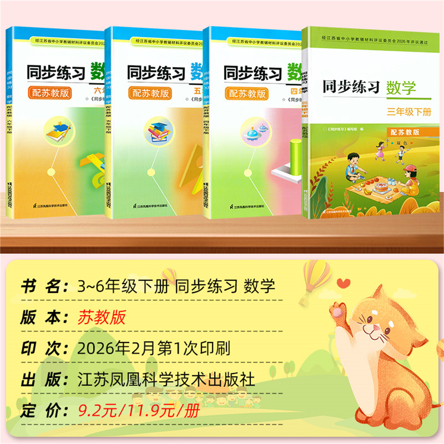 2026春同步练习系列专为小学三至六年级学生设计,涵盖数学与英语两个学科,上册下册齐全,严格配套苏教版数学和译林版英语教材。内容紧扣新课标要求,按课时同步编排,题型丰富,注重基础知识巩固与能力拓展,帮助学生夯实课堂所学。每册均配有详细参考答案,便于学生自查自纠、家长辅导和教师批改。由江苏凤凰科学技术出版社精心出版,内容权威、编排科学,是江苏地区师生广泛使用的优质同步练习册。本系列不含试卷,专注日常练习,助力学生稳步提升学业水平。