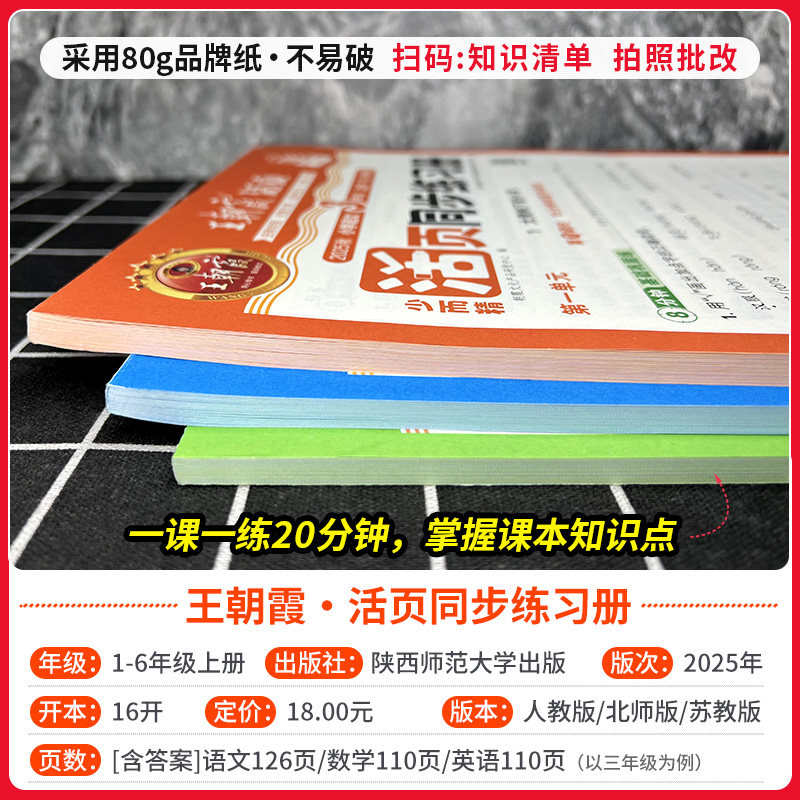 天猫2025秋王朝霞活页同步练习册小学一二三四五六年级上册语文英语数学人教版北师苏教课时训练作业课本同步练习一课一练综合练习题