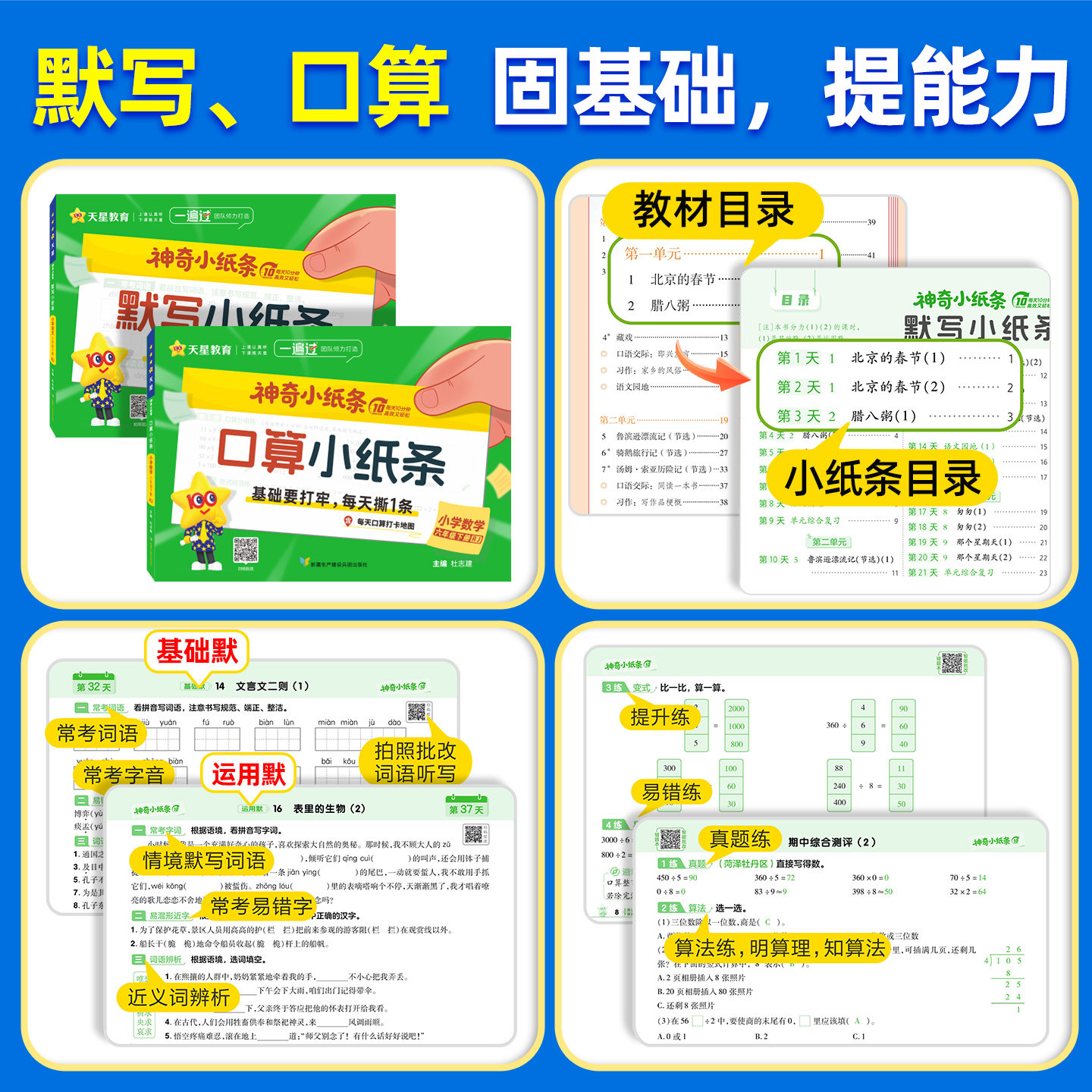天猫2026春新版神奇小纸条小学语文英语默写课课贴人教版数学附加题口算一遍过一年级下册二三年级四五年级六下同步课本新教材天星教育