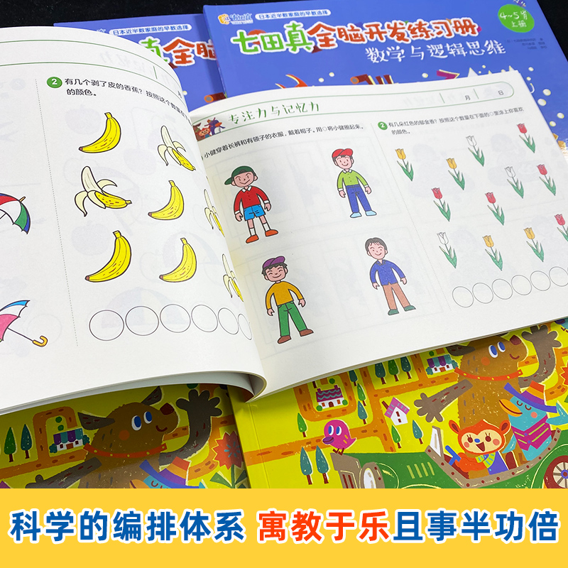 天猫七田真全脑开发练习册全套24册数学与逻辑思维专注力与记忆力训练书籍3-6岁幼儿童脑力训练幼儿园大班幼小衔接提升注意力培养习题