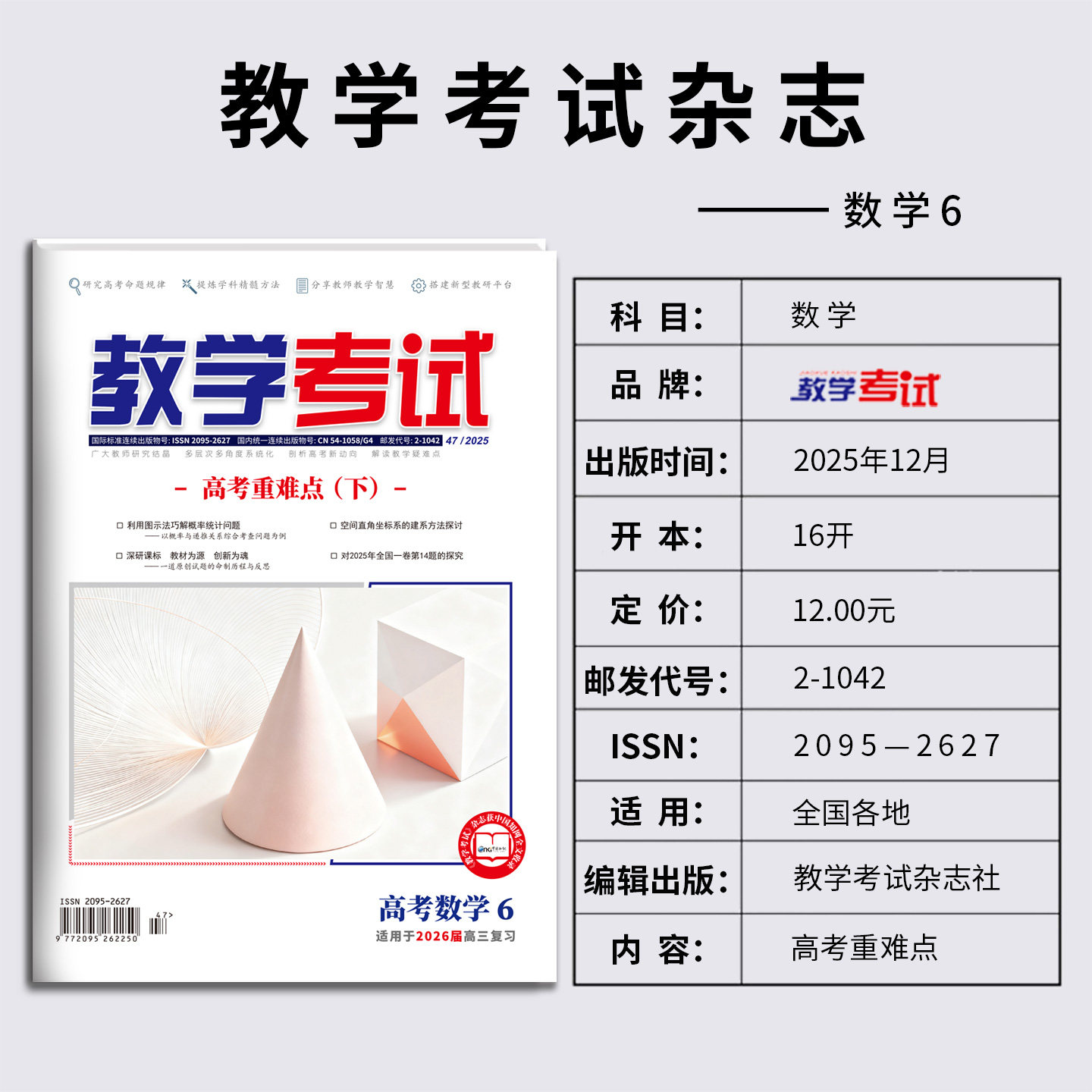 《教学考试》杂志2025年第123456期高中期刊,涵盖语文、数学、英语、物理、化学、生物、政治、历史、地理九大学科,专为高考复习与教学调研精心打造。每期精选典型试题,深度解析命题趋势,配套历年真题及原创模拟题,助力师生精准把握考点。内容紧扣新课标与高考评价体系,强化核心素养训练,提供系统化复习策略与高效备考方案。适用于高三一轮至三轮复习,亦适合高二提升使用。全套资料科学编排、权威实用,是高中师生提升教学质量与应试能力的重要参考资源。