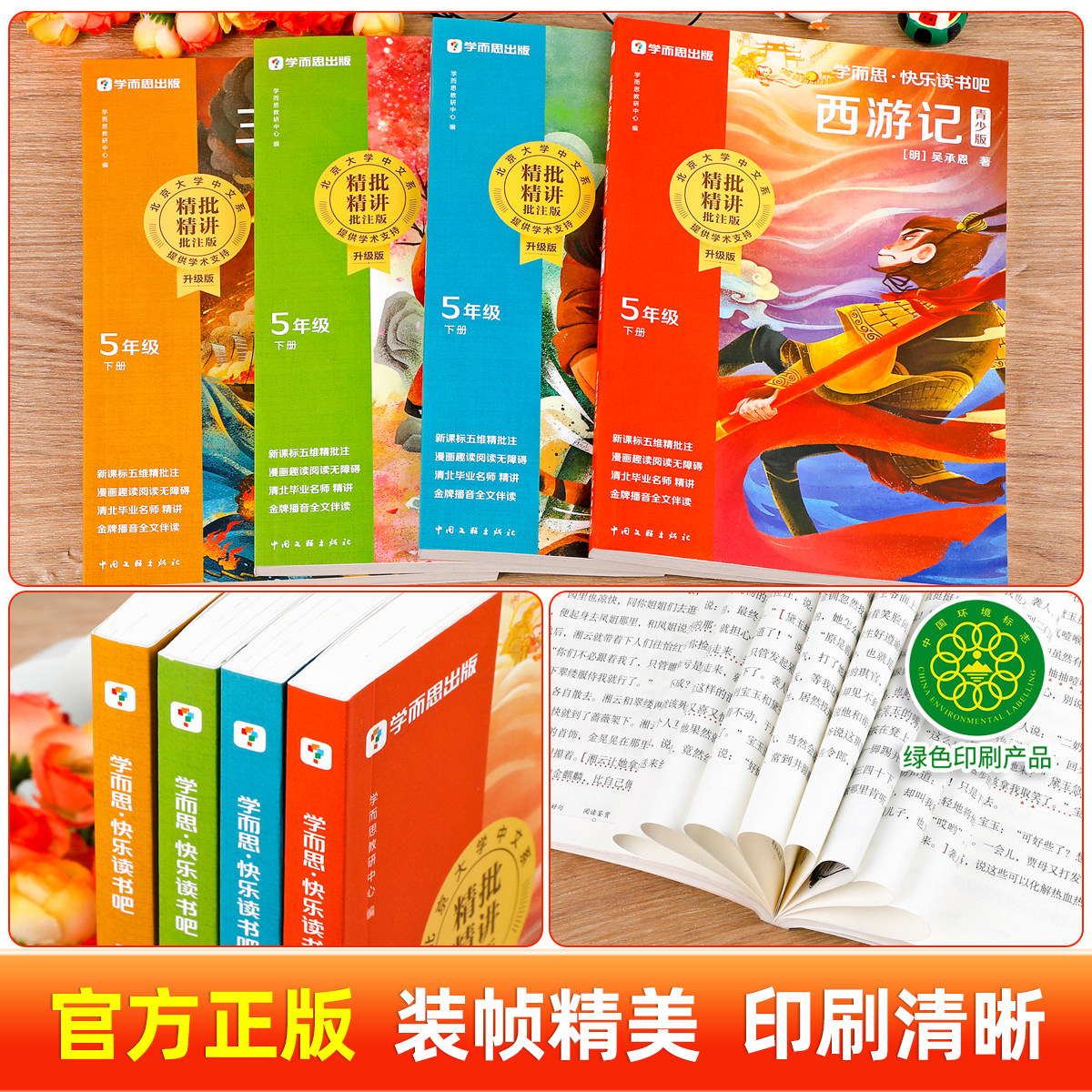 四大名著原著正版五年级下册必读正版的课外书三国演义西游记小学生版青少年版本快乐读书吧五下阅读书籍中国红楼梦水浒传全套书目