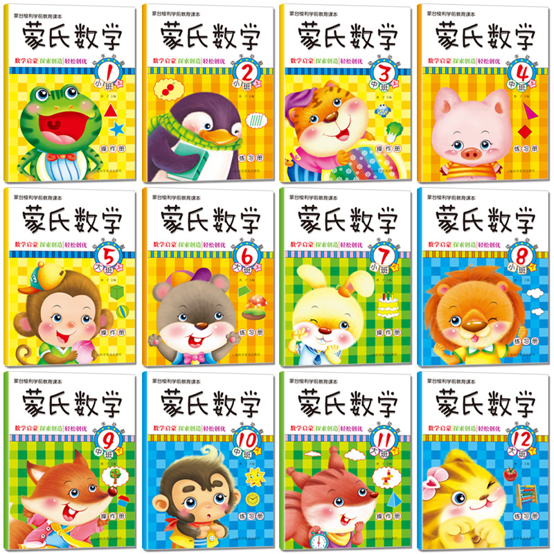 天猫新蒙氏数学 全12册蒙台梭利学前课本3-6岁幼儿园小班中班大班儿童数学启蒙教材书 数字认知加减法益智练习题 空间逻辑思维能力训练
