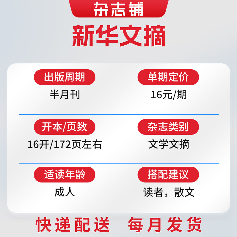 天猫新华文摘杂志 2026年1月起订 1年共24期 杂志铺全年订阅 综合学术资料 交叉学科 热点文学问题 名家名篇文学文摘期刊图书杂志
