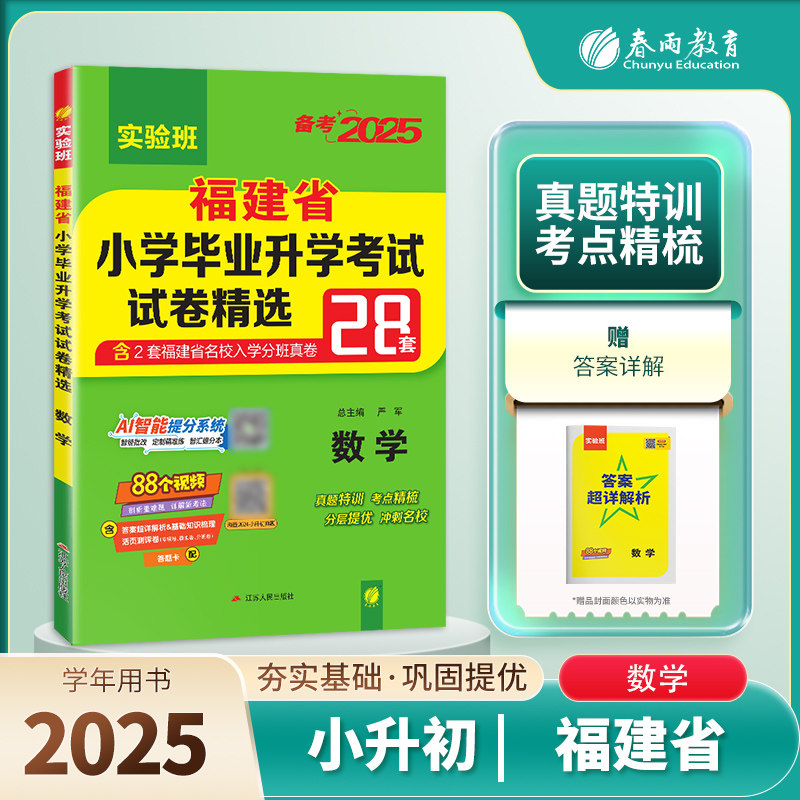 《现货小升初真题卷2025必备数学·福建省小学毕业升学考试试卷精选》由春雨教育精心编写,专为六年级学生小考总复习打造。本书精选福建省近年小升初数学真题,收录28套高质量模拟卷与历年真题,紧扣最新考纲,题型全面,难度适中,帮助学生熟悉考试节奏、掌握核心考点。每套试卷均配有详细解析,便于查漏补缺,提升解题能力。作为六年级下册必备辅导资料,本书注重实战训练与知识梳理相结合,助力考生高效备考,轻松应对升学考试,实现“考必胜”的目标。是家长信赖、学生必刷的优质复习用书。