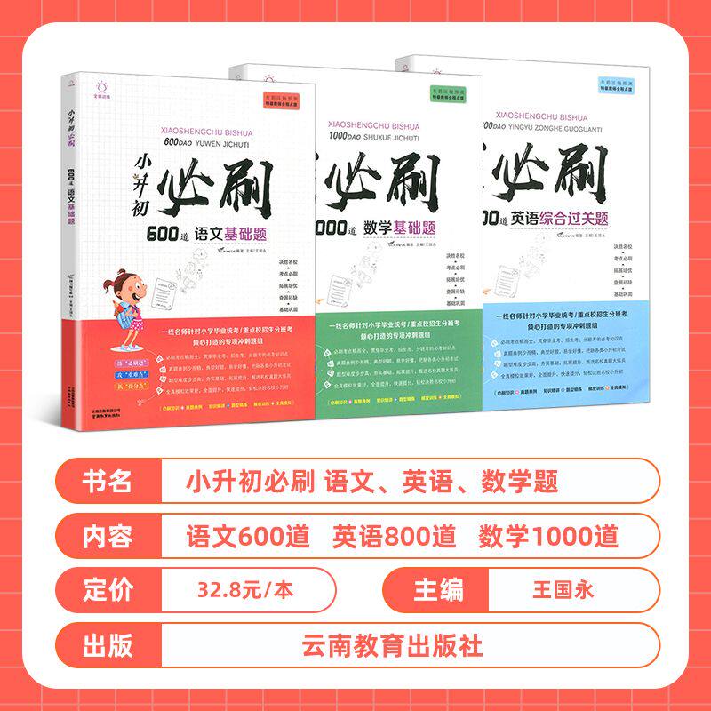 《2026小升初必刷题》是一套专为六年级学生设计的人教版语文、数学、英语总复习资料,紧扣新课标要求,全面覆盖小升初及分班考试核心考点。书中精选历年真题与典型题型,设有阅读理解、计算与应用题专项训练,帮助学生夯实基础、突破难点。数学部分强化计算能力与综合应用,语文注重阅读分析与写作技巧,英语提升词汇与理解能力。试卷编排科学,难度梯度合理,配有详细解析,便于查漏补缺。是冲刺理想中学、备战分班考试的高效备考工具,助力学生在小升初关键阶段稳步提分,顺利升学。