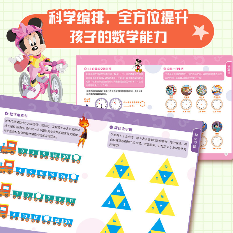 《迪士尼超级大脑数理逻辑闯关书》专为3~8岁儿童设计,是一套融合趣味与智慧的益智游戏书。书中以孩子们喜爱的迪士尼经典角色为引导,通过丰富多样的数学游戏,系统培养孩子的数量与运算、图形与几何等核心数理逻辑能力。题型涵盖数数、比较、分类、空间感知、简单加减法等,难度循序渐进,激发孩子主动思考与探索兴趣。每道题都像一场趣味闯关,让孩子在玩中学、学中乐,轻松提升专注力、观察力和逻辑思维。适合幼儿园至小学低年级儿童使用,是家庭亲子互动与早期数学启蒙的理想选择。