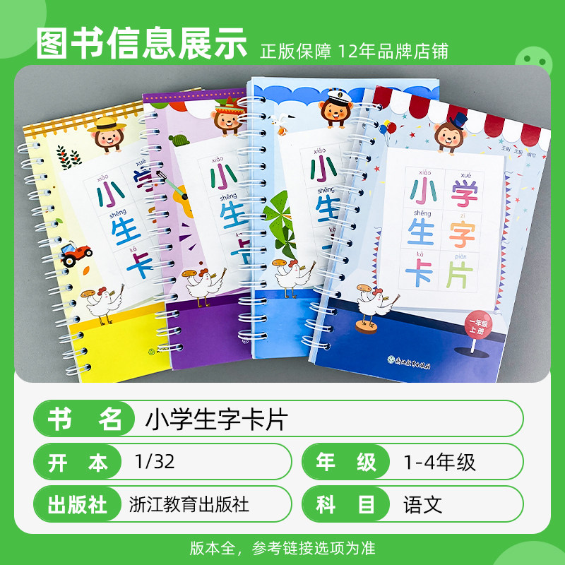 【杭州发货】小学生生字卡片,专为1-4年级学生设计,与人教版语文课本同步,涵盖上下册全部生字。每张卡片正面为生字、拼音及笔顺,背面配有组词、造句和字形解析,帮助孩子高效认字、识字、练字。采用加厚耐磨材质,圆角设计安全不伤手,便携易收纳,适合课堂学习、课后复习及亲子互动。配套生字本练习,强化记忆与书写能力,是提升语文基础的专项辅导好帮手。现从杭州仓库直发,品质保障,助力孩子轻松掌握汉字,打好语文学习根基。