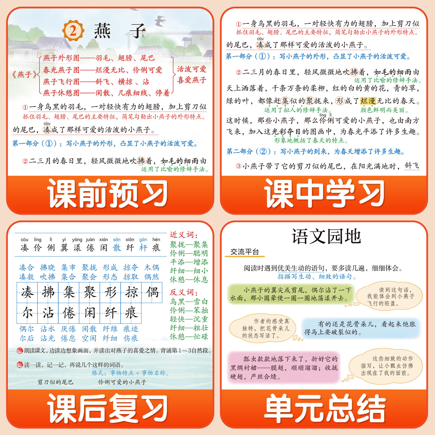 天猫2026年新版三年级下册课堂笔记语文数学英语人教版小学课本同步下册教材笔记六下外研随堂黄冈学霸本课前原文全讲解预习资料辅导书