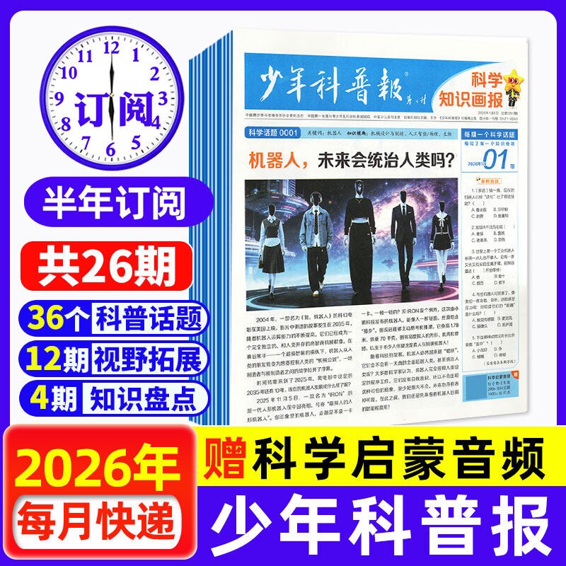 天猫1/2月现货!少年科普报科学知识画报杂志2026年1-12月春/秋季学期/全年/半年订阅8-15岁小学生青少年科技大语文新闻报纸看天下过刊