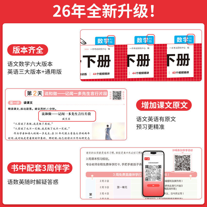 2026春新版《一本》七八年级下册小四门同步预习教辅,专为初一、初二学生打造,紧扣语文、数学、英语、物理四科下册教材内容,系统梳理知识点,助力高效预习。书中精选典型例题与必刷练习题,分层训练,夯实基础,提升解题能力。题型贴近中考趋势,配有详细解析,便于自学巩固。内容编排科学,重难点突出,适合课前预习、课后复习及寒暑假衔接使用。作为初中阶段必备同步练习册,本书帮助学生提前适应学习节奏,打牢学科基础,是提升成绩的理想教辅之选。