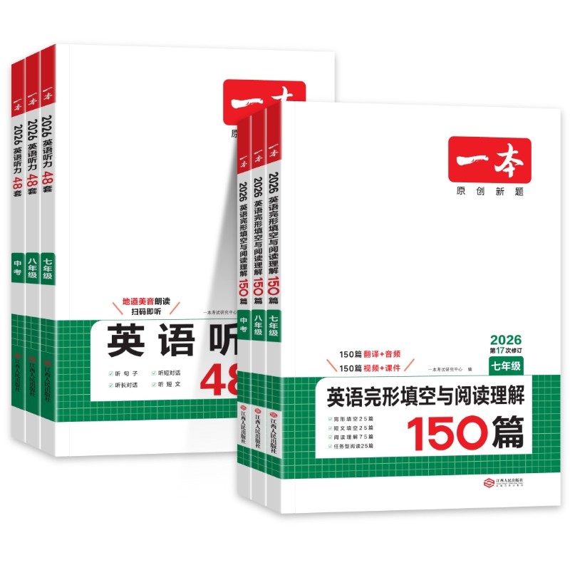 2026版《初中英语完形填空与阅读理解》专为七至九年级学生设计,紧扣中考英语考纲,系统覆盖完形填空、阅读理解及听力专项训练。精选历年真题与原创模拟题,题型全面,难度分层,助力学生夯实基础、提升解题技巧。每册按年级划分,内容循序渐进,配有详细解析与答题策略,帮助学生高效备考。同时融入最新中考趋势,强化语言综合运用能力。配套听力音频,提升听说读写综合素养。是初中生巩固知识、冲刺中考的理想复习资料,适合课堂练习与课后自测,全面提升英语成绩。