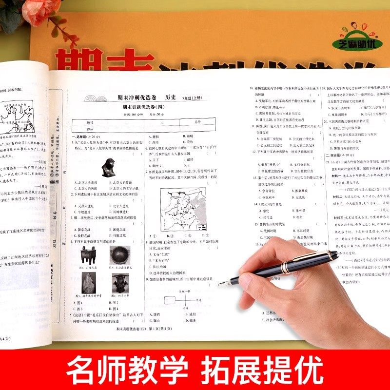 2025新版七年级上册下册期末试卷全套,涵盖语文、数学、英语及小四门(政治、历史、地理、生物),紧扣人教版教材,专为初一学生期末冲刺设计。试卷精选历年真题与典型题型,难度适中,梯度分明,全面检测知识掌握情况。每科均配有详细解析,帮助学生查漏补缺,提升应试能力。“期末冲刺100分”系列注重基础巩固与能力提升并重,是复习备考的高效工具。通过系统刷题,学生可熟悉考试节奏,掌握答题技巧,轻松应对期末考试,助力成绩稳步提升,是初一学生必备的学习资料。