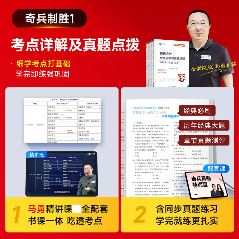 《2026年之了课堂初级会计师奇兵制胜1和2/3》由马勇老师主编,专为初级会计职称考生打造,紧扣最新考纲,系统梳理《经济法基础》与《初级会计实务》核心知识点。教材融合学考要点、同步习题、历年真题及高质量刷题库,强化理解与实战能力。知了骑兵系列配套资源丰富,讲练结合,帮助考生高效突破重难点,夯实基础、提升应试技巧。无论是自学还是跟课学习,都能助力考生科学备考,快速通关2026年初级会计职称考试,是广大考生信赖的备考利器。