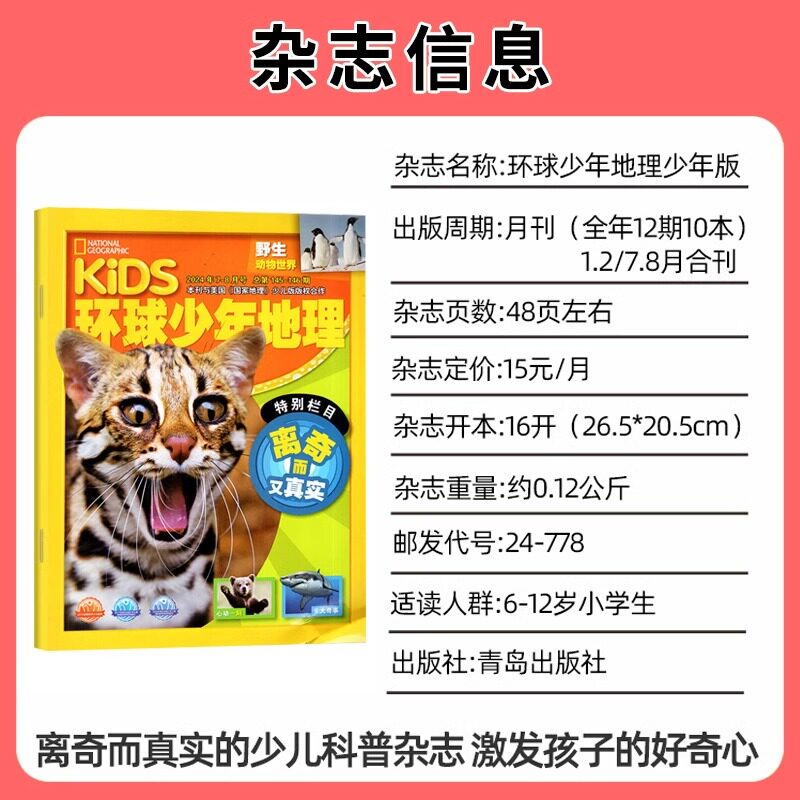 《Kids环球少年地理少年版》2026年1-2月合刊(全年/半年订阅可选)是专为6-12岁儿童打造的权威科普读物,源自美国国家地理学会,内容涵盖自然、科学、地理与人文知识。每期精选全球奇趣动植物、神秘地貌与前沿科学发现,配以高清实景图片与生动故事,激发孩子探索世界的兴趣。2025年典藏过刊同样精彩,知识体系完整,适合收藏与反复阅读。无论是订阅新刊还是收藏经典,都能为孩子打开一扇通往广阔世界的窗口,在趣味阅读中培养科学思维与全球视野,是小学生课外阅读的理想之选。