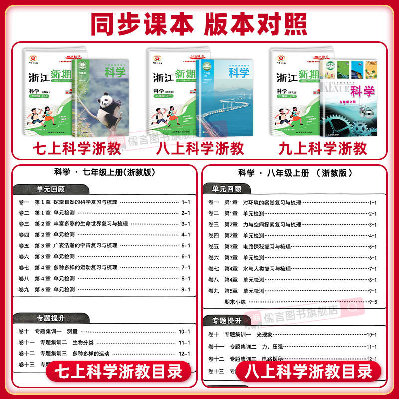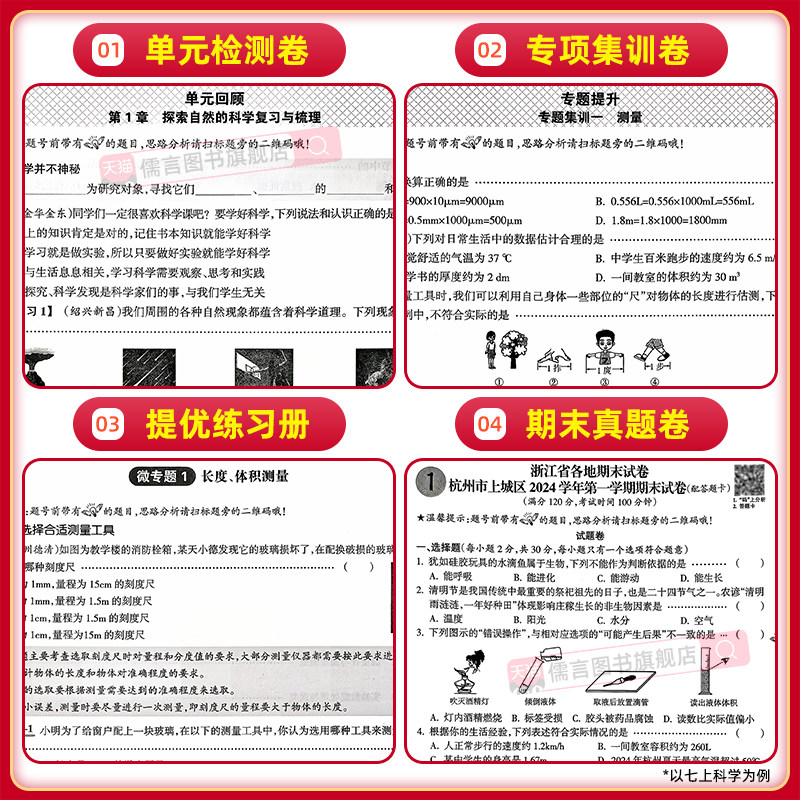 天猫【数学+科学浙教版】2026新版浙江新期末试卷七八年级上下册人教版初一初二初三初中各地真题卷复习专项训练单元测试考试卷子励耘