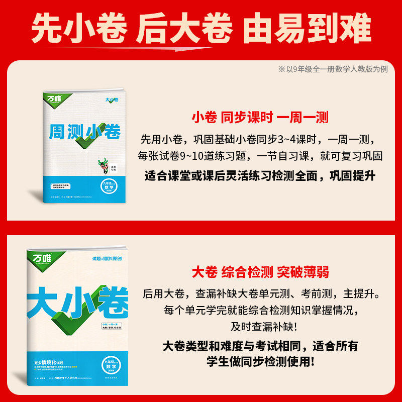 2026春万唯中考《大小卷》系列专为初中七至九年级学生设计,涵盖语文、数学、英语、物理、化学及沪科版历史等学科,同步教材上册下册内容。试卷分为“小题精练”与“大题突破”两大模块,紧扣中考考点,强化基础训练与能力提升。精选情境化试题,聚焦阅读、实验、综合应用等专题,帮助学生夯实知识、掌握解题技巧。题目设计贴近中考命题趋势,配有详细解析,适合课堂同步练习、阶段检测与考前复习。作为初中必刷题系列,万唯《大小卷》助力学生高效备考,稳步提升成绩,是初中生提升学科素养的优质教辅资料。