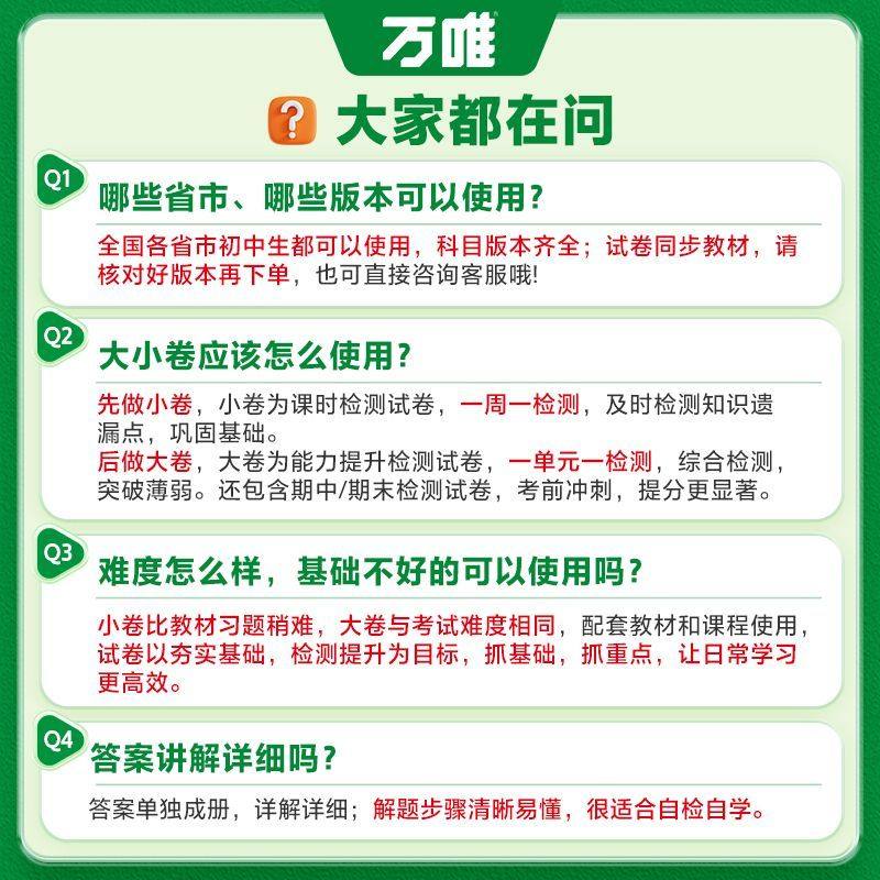 天猫2026春万唯中考大小卷初中七八九年级上册下册语文数学英语物理化学七下八下同步练习册测试卷初必刷题情境专题考点阅读沪科版历史