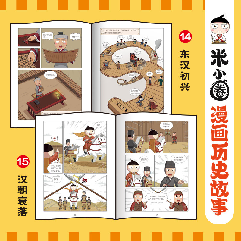 【新书上市】《米小圈漫画历史故事》第14册《东汉初兴》与第15册《汉朝衰落》精彩来袭!延续一贯风趣幽默的风格,米小圈带你穿越回东汉,见证光武帝刘秀重建汉室的辉煌,也亲历外戚宦官专权、黄巾起义的动荡年代。漫画形式生动有趣,历史知识轻松易懂,让孩子在笑声中掌握东汉兴衰脉络。适合小学三至六年级学生课外阅读,既是课堂延伸,也是兴趣启蒙。图文并茂,寓教于乐,让历史不再枯燥!快来和米小圈一起,用漫画通古今,开启智慧阅读新体验!