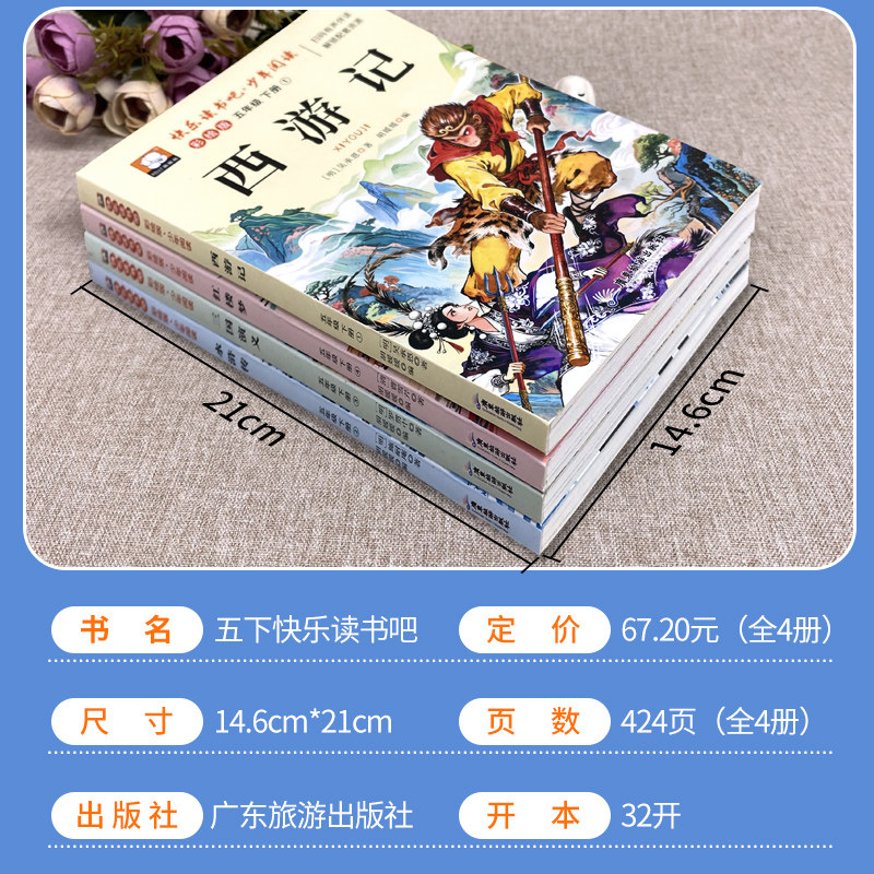 五年级下册快乐读书吧必读的课外书四大名著全套正版原著 5下西游记三国演义水浒传红楼梦小学生青少年版人教经典书目老师寒假推荐