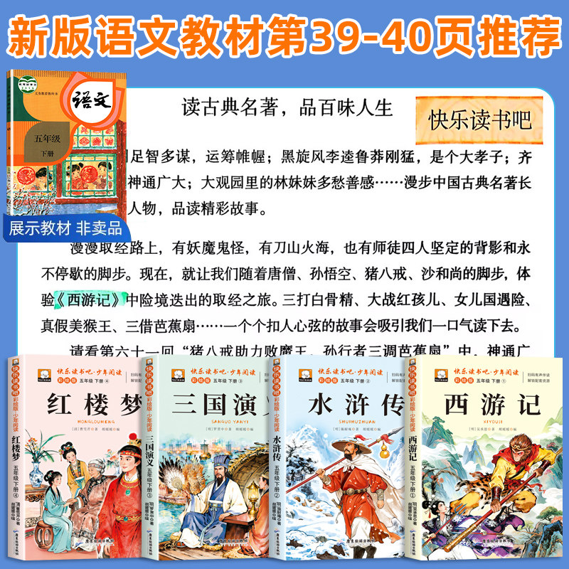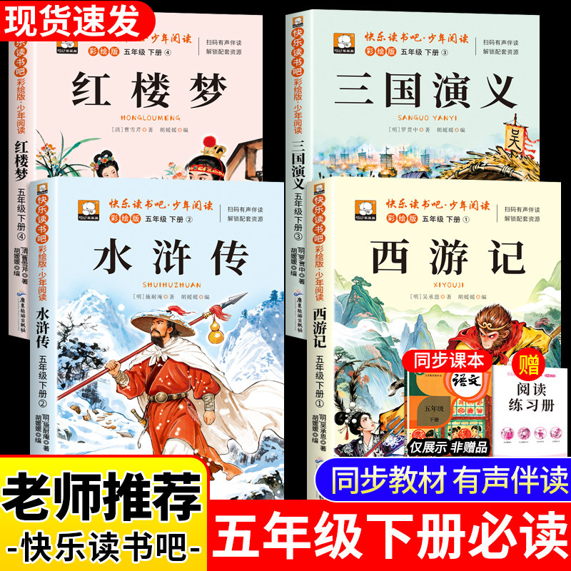 天猫四大名著原著正版小学生版五年级下册必读的课外书老师推荐快乐读书吧五5下全套西游记三国演义水浒传红楼梦中国青少年版人教书籍