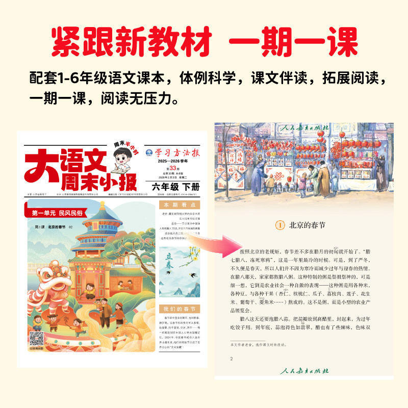 大语文周末小报2026年1/2月28-36期学习周报大语文趣读画报寒假阅读杂志报纸人教版【全/半年订阅】荣恒一到六年级L大语文知识画报