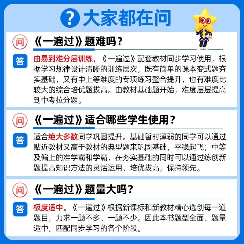 2026春《一遍过》初中同步练习册,涵盖七、八、九年级上下册,科目齐全,包括语文、数学、物理、化学、生物、地理、历史等,适配人教版及沪粤版教材。本书紧扣新课标要求,系统梳理知识点,分层设计基础巩固、能力提升与拓展探究题型,注重夯实基础与高效训练相结合。精选典型例题,强化专项突破,帮助学生逐层攻克难点,提升综合素养。题型新颖,题量适中,适合日常同步练习与考前复习。天星教育出品,品质保障,是初中生夯实基础、提升成绩的理想教辅用书。