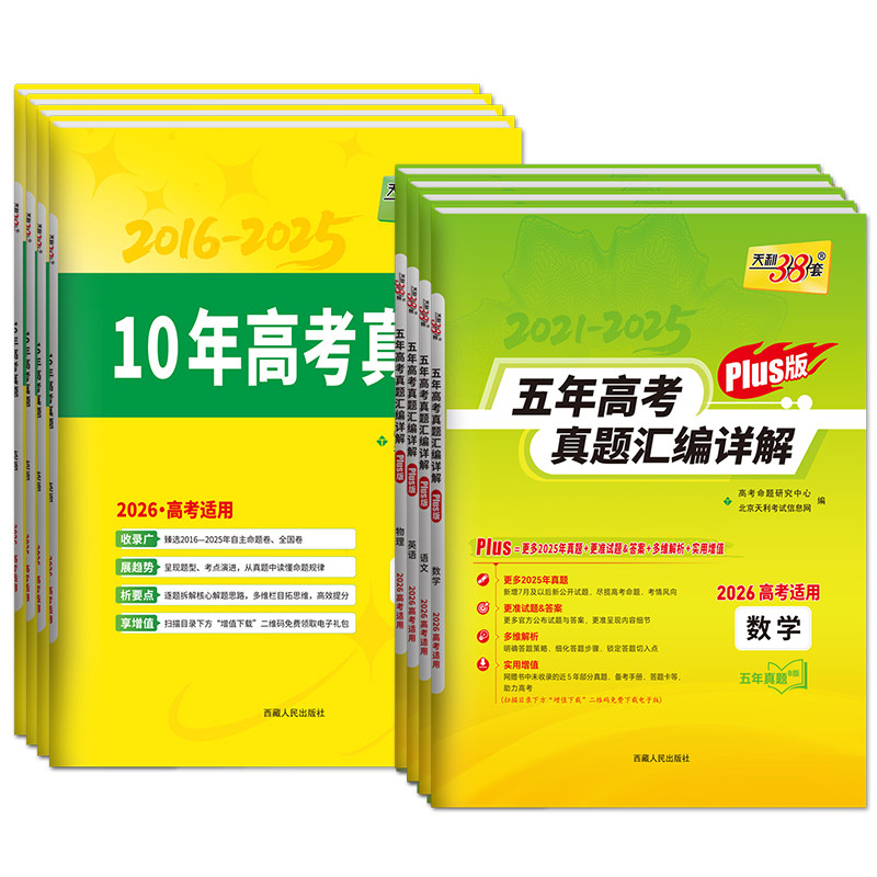 2026Plus版《天利38套》五年高考真题汇编详解,涵盖语文、数学、英语、物理、化学、生物、政治、历史、地理九大学科,精选近五年全国及各省市高考真题,按考点科学分类,配套权威解析与答题技巧指导。试卷编排贴近高考实战,帮助高三学生系统梳理知识体系,精准把握命题趋势。Plus版新增新课标考点解读、高频题型专项训练及答题模板,强化应试能力。全书内容权威、解析详尽,是高三一轮复习与冲刺提分的优质资料,助力考生高效备考,决胜高考。