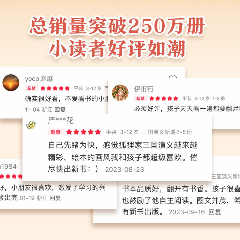 《狐狸家·三国演义绘本》全套12册,专为6岁以上小学生精心打造,以生动有趣的连环画形式再现经典名著《三国演义》。书中用童趣盎然的画风、简洁易懂的语言,还原桃园结义、三顾茅庐、草船借箭等经典故事,让孩子轻松走进波澜壮阔的三国世界。每册聚焦一个精彩篇章,图文并茂,兼具知识性与趣味性,适合亲子共读或独立阅读。作为四大名著启蒙读物,它不仅帮助孩子了解中国历史与文化,更培养阅读兴趣与想象力。狐狸家原创团队匠心呈现,让传统文化在童心中生根发芽,是孩子成长路上的优质国学启蒙之选。