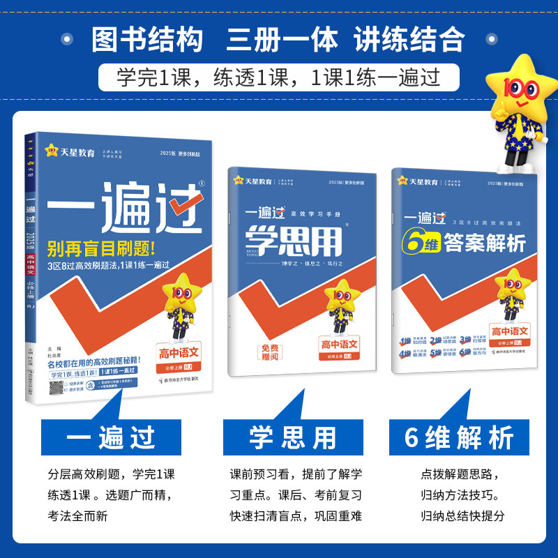 《2026一遍过》是一套专为高中生设计的高效同步练习资料,涵盖人教版高一上册必修第一册数学,以及高二上册物理、化学、生物、英语、语文、政治、历史、地理等学科的选择性必修第一至第四册。本书紧扣新课标与高考考纲,题型全面,难度分层,注重基础知识巩固与能力提升相结合。每册均配有典型例题、真题演练和详细解析,帮助学生夯实基础、突破重难点,实现“学一课、练一课、会一课”的目标。适合课前预习、课后复习及阶段性检测使用,是高中学生同步学习与备考的理想助手。